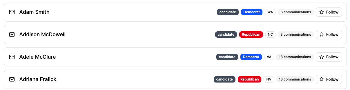We added the ability to follow a campaign when you are viewing them in the directory. Following a campaign allows you to track specific candidates and see only the content from those you follow